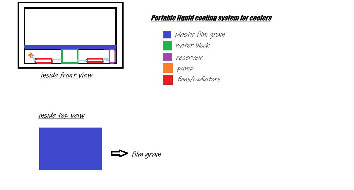 Hey everyone this is Trenton. I was hoping for some advice/ideas on how i could further improve my portable liquid cooling system for coolers. below will be an attached concept sketch. Let me know what you guys think and what i should do to further improve my concept and hopefully make it manufacturable.