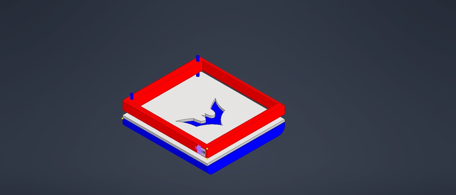 Full assembly excluding clamps. Was thinking about just having the top part be threaded knob’s, although I would like to figure out how to model clamps for the bottom. basically the shirt will go right after the bottom frame, and the template and top frame will be pressed down on top and tightened by the threaded knobs.