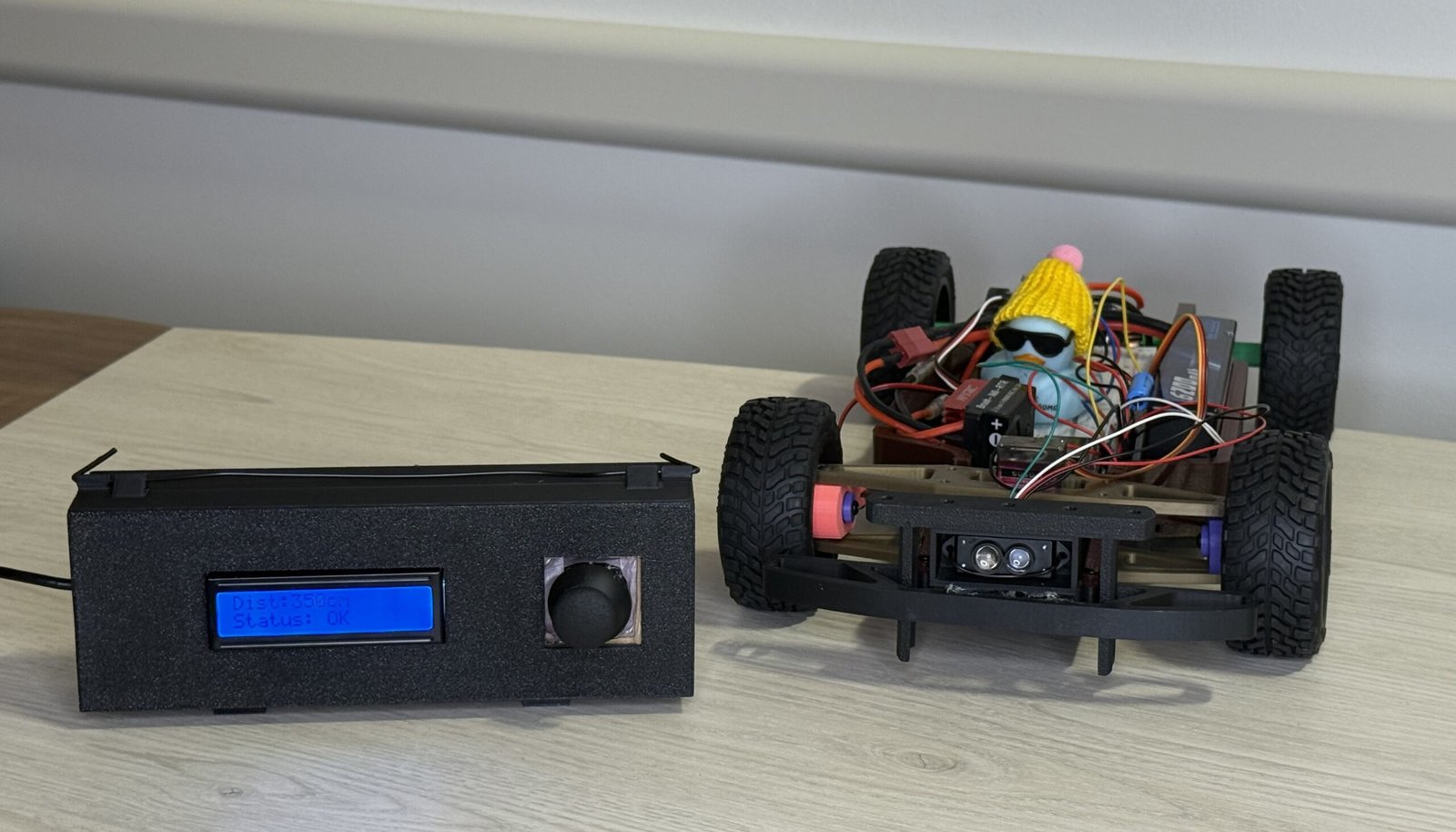 My RC car features LiDAR-based obstacle avoidance, smooth braking, wireless ESP-NOW communication, and live status feedback. I designed and built every part of the system, from the electronics and control logic to the overall vehicle integration. The remote sends commands to the car while the ESP32 continuously monitors LiDAR distance and automatically slows or brakes when an object is too close. The display indicates whether the system is safe or actively braking.